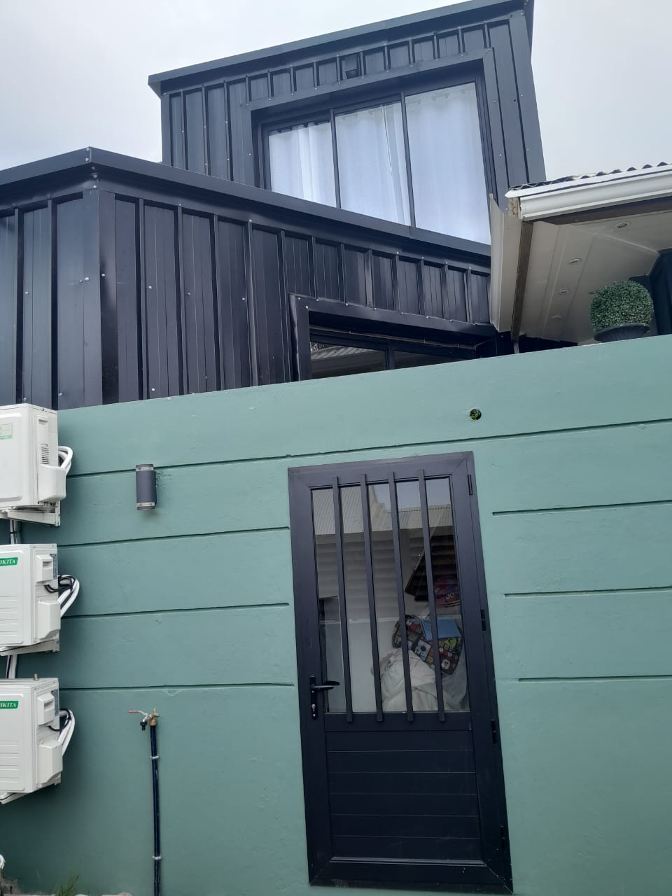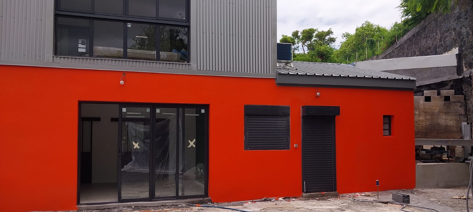 Transformation d’un bâtiment à usage mixte combinant espace de stockage et habitation moderne. Reprise complète de la façade avec bardage métallique vertical, installation de menuiseries vitrées et sécurisées, et mise en place d’un système de climatisation performant (MULTI KS). L’intervention a permis d’optimiser les volumes, d’améliorer le confort thermique et de valoriser l’esthétique industrielle du lieu tout en respectant les normes HQE.